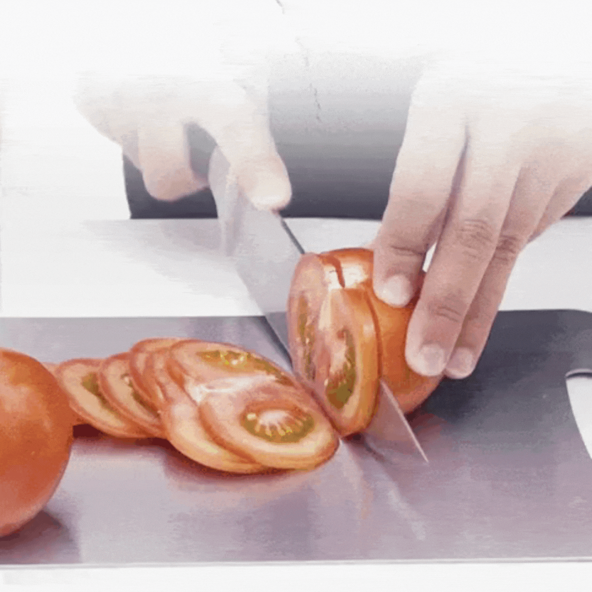 "Plastic boards trap bacteria, and wooden boards soak up meat juices—This cutting board fixes all of that. I need something truly hygienic, and this is it. It keeps my knives razor-sharp and cleans instantly. Total game-changer!"